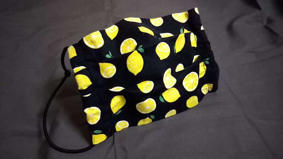 ↑これを作った当時はマスク、トイレットペーパー、ティッシュペーパー、ガーゼ、ゴム紐などが店から消えた時期でした。材料がなかなか手に入らず、なんとか布と髪を結わえるゴムで作りました。しょぼいのですが、苦労して手に入れたラブリーなやつです。防御力はあまりなさそうなので近所にちょっと出る時だけ使用してました。